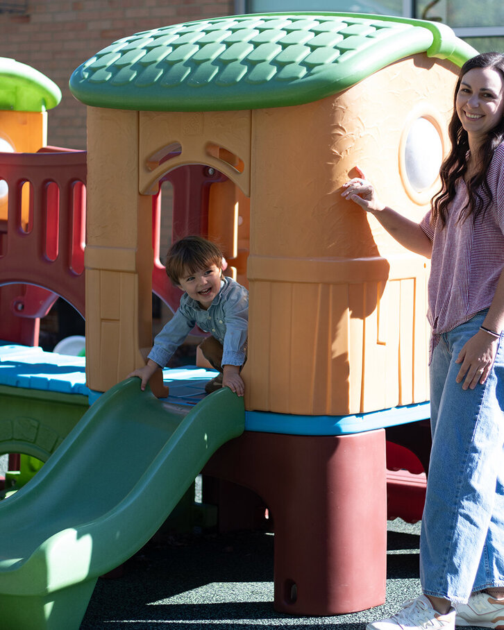 The challenges Tino faced were largely physical, Jenna said, stating that he did not walk until he was two years old and said, “We were just constantly wondering ‘Where is he on the spectrum of development? Is he catching up is he still behind?’ and so for us to have teachers, and a team, and a school to step in…it’s been the most valuable experience for us.” She went on to say, glowing with pride, that Tino is now more mobile than ever. “He’s reached and surpassed his physical development goals. He’s walking, he’s working on running, and over the summer we were working on hopping and he’s bouncing around the room.” She went on, “He was also slow to talk. Now, he’s got some complete sentences, he knows all of his colors, all of his numbers, all of his shapes."